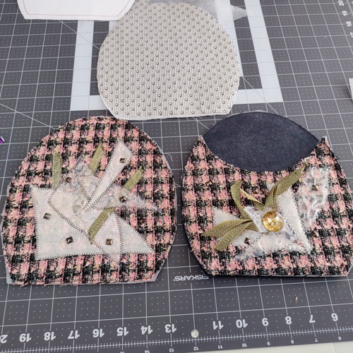 ag Six also shows some variation in hardware and embellishment – this is the first time I’ve gone with a slim version of the vegan leather strap, instead of the sturdier multi-layer edition; I also went with a 3/4″ finished width – which is impossible to do with the additional layers if you want to maintain any sense of proportion. Since this is a party bag and not a daily driver, I wasn’t too concerned with the idea that the bag would be overloaded and the strap would fail.
