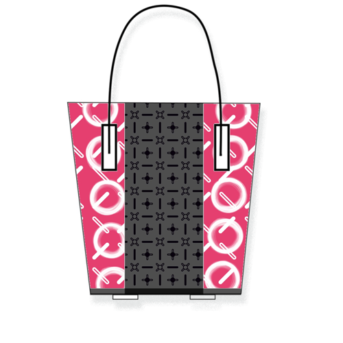 Bag Three was an early edition of a popular tote bag - wooden feet, taller than it is wide, streamlined shaping with multiple inside and outside pockets.