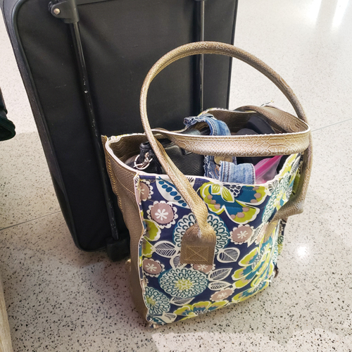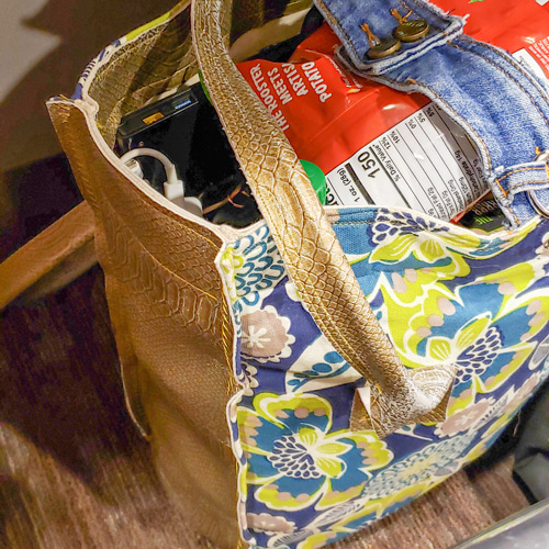 Bag Two features inside slip pockets and a lobster claw key fob holder, so you can forget about digging around in the bottom of your bag, desperately searching for those little suckers… and the bottom of the bag is supported by hand cut and finished wooden feet, which help to keep the bag bottom from getting wet or dirty when sitting on the ground or in the airport.