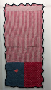 State of the Union is an exercise in textile irony. It uses the “soft” medium of quilting—traditionally associated with comfort and domestic stability—to broadcast a message of profound instability. Between the embroidered phrases (the “chatter” of the moment) and the gilded skeletons (the reality of the regime), the artist captures a nation that is both vibrant and decaying, held together by the thin, hand-sewn threads of its founding ideals while being haunted by those who sought to dismantle them.